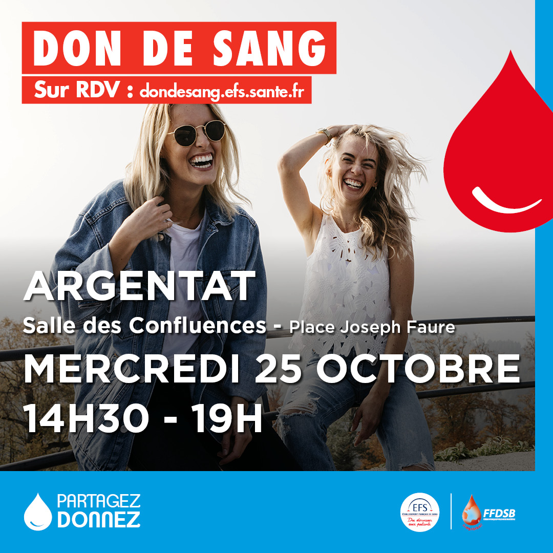 Collecte de sang à Argentat le mercredi 25 Octobre 2023