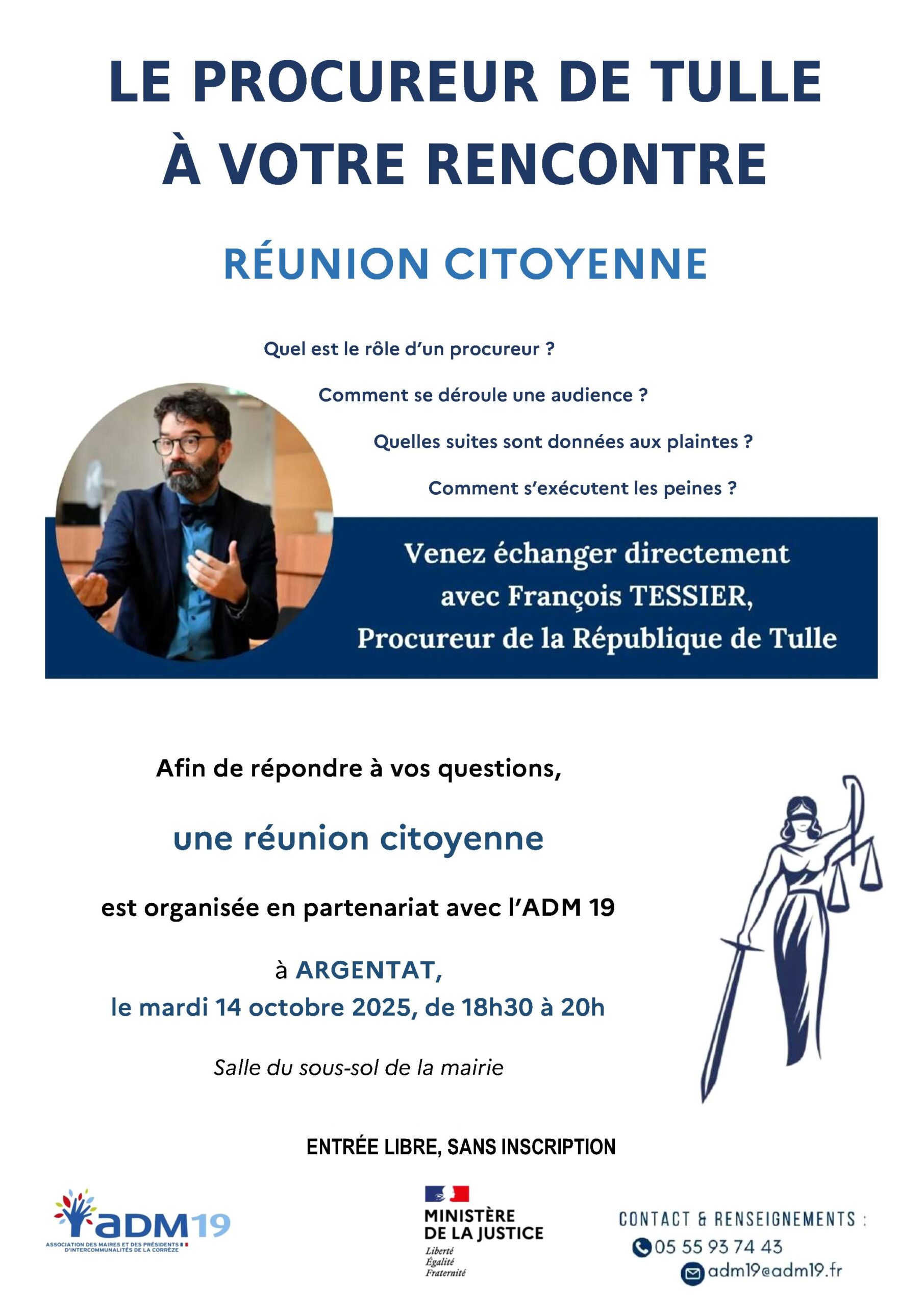 Dans le cadre d’une série de rencontres organisées dans tout le département, l’ADM 19 vous donne rendez-vous à Argentat pour une nouvelle réunion citoyenne, en présence du Procureur de la République de Tulle, François TESSIER.