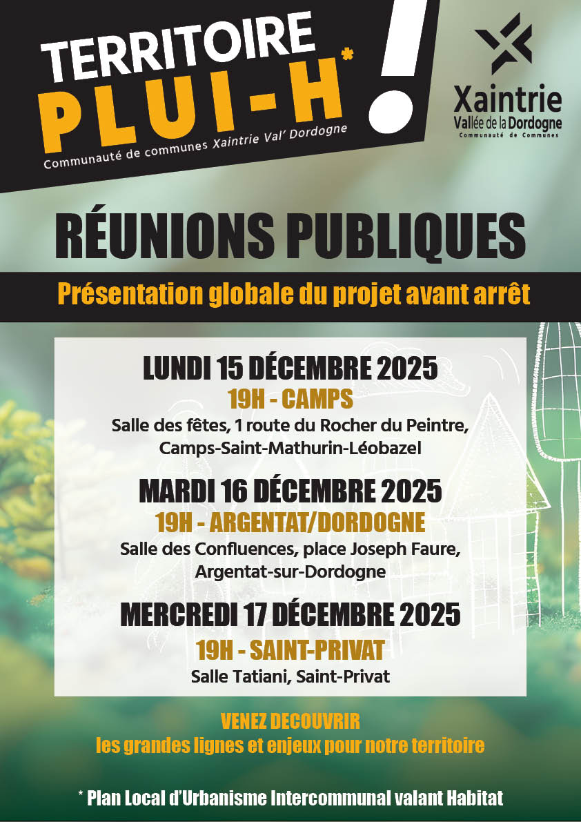 Réunions publiques PLUI-H les 15,16 et 17 décembre 2025